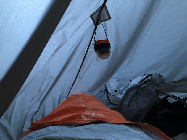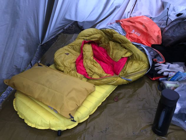ミスターがもぞもぞと起床。ミスターの寝具はサーマレストのパタパタ銀マットにウインドハードとネイチャーハイクとエスケープビビィ。寒かったらしいがアテパも出して包めばよかったのに枕にしてたみたい。笑