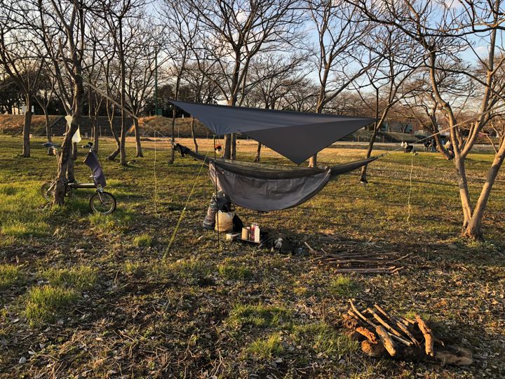 今年の3月初旬頃のお話。とある河原でお忍びハンモックキャンプをやってみました。