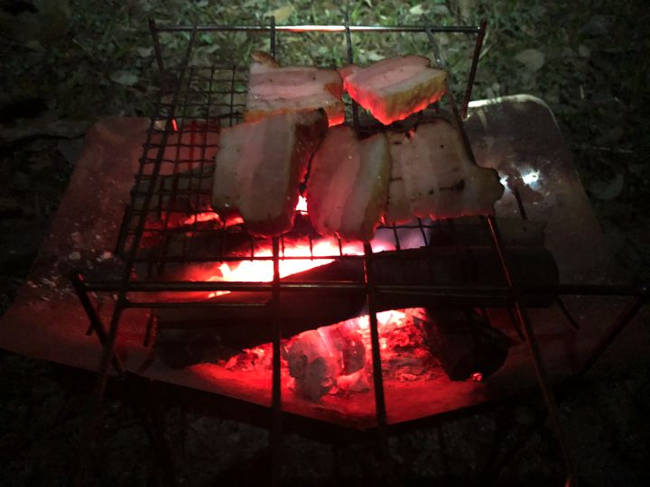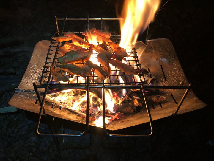 焚火はエンバーリットからピコグリルに移動して手羽先を焼きます。うみゃ〜!