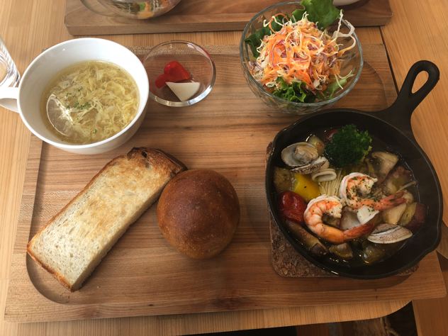 アヒージョランチ。焼きたて自家製パンが、うみゃ~!