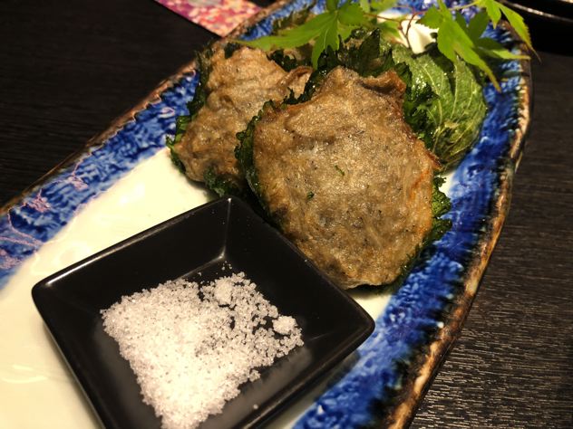 串揚げ追加。春の香り4本セット(たらの芽、竹の子、アスパラ、サワラ)