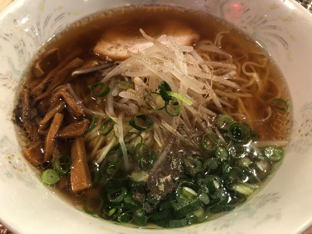 あっさりした醤油ラーメンも〆に最高!胡椒多めにフリフリ。もうダメ、ばたんQ。