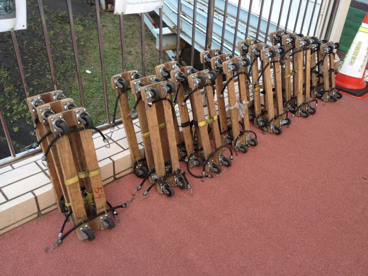 歩道をひたすら台車付きで転がすのね。むひ〜
