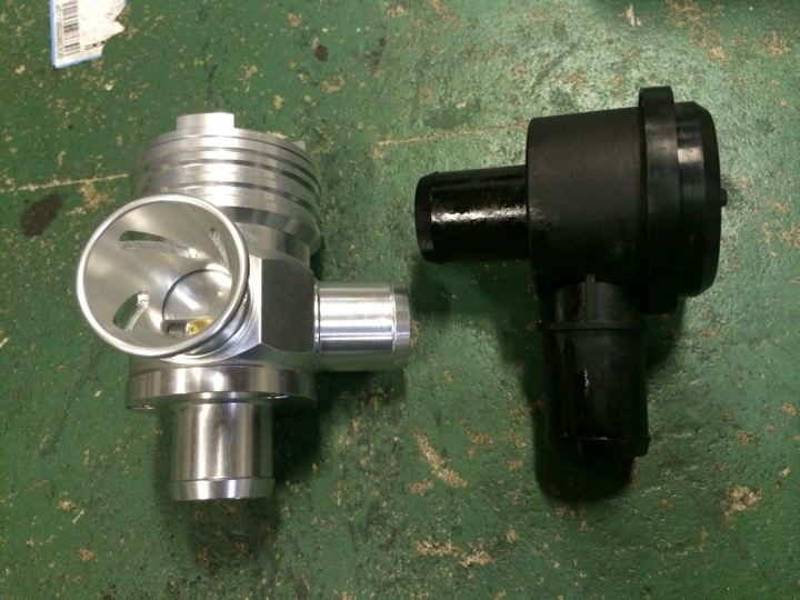 Revo technikさんのOBD-ⅡシリアルポートプログラミングとSPSシリアルポートスイッチで200馬力になっちゃったから、VW純正のプラスチックのディバーターバルブでは心もとないのでForgeさんの強化ディバーターバルブに交換する事に・・・。